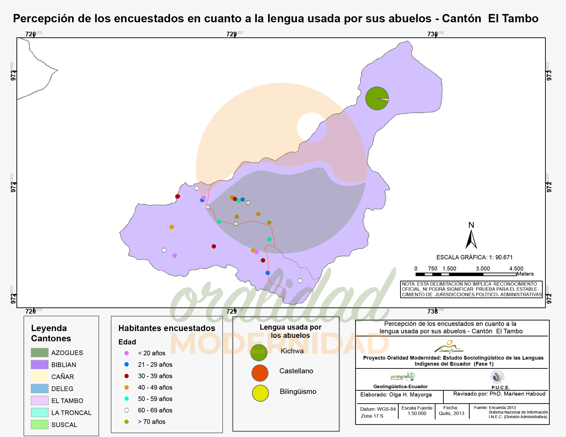 Cite así: Haboud, M. (2013). Mapa de la percepción de los encuestados en cuanto a la lengua usada por sus abuelos en el cantón El Tambo. Programa Oralidad Modernidad/GeolingüísticaEcuador. https://oralidadmodernidad.org/canton-el-tambo/