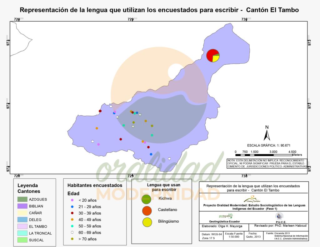 Cite así: Haboud, M. (2013). Mapa de la representación de la lengua que utilizan los encuestados para escribir en el cantón El Tambo. Programa Oralidad Modernidad/GeolingüísticaEcuador. https://oralidadmodernidad.org/canton-el-tambo/