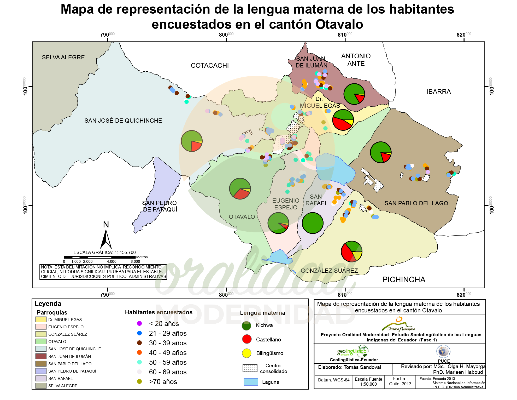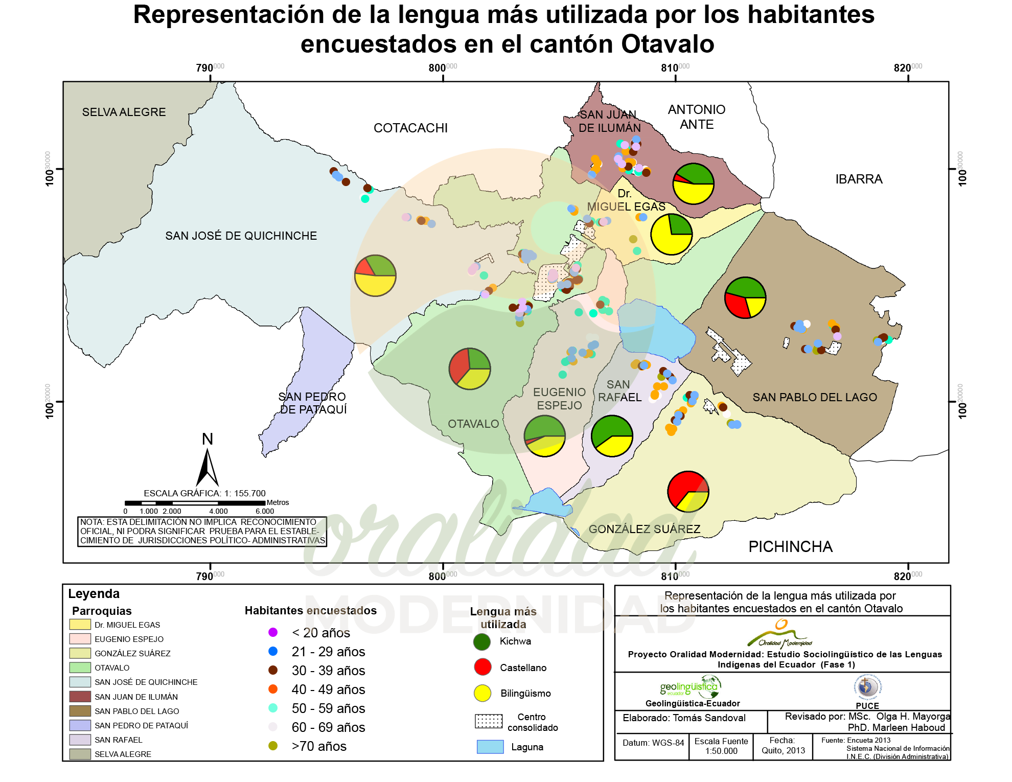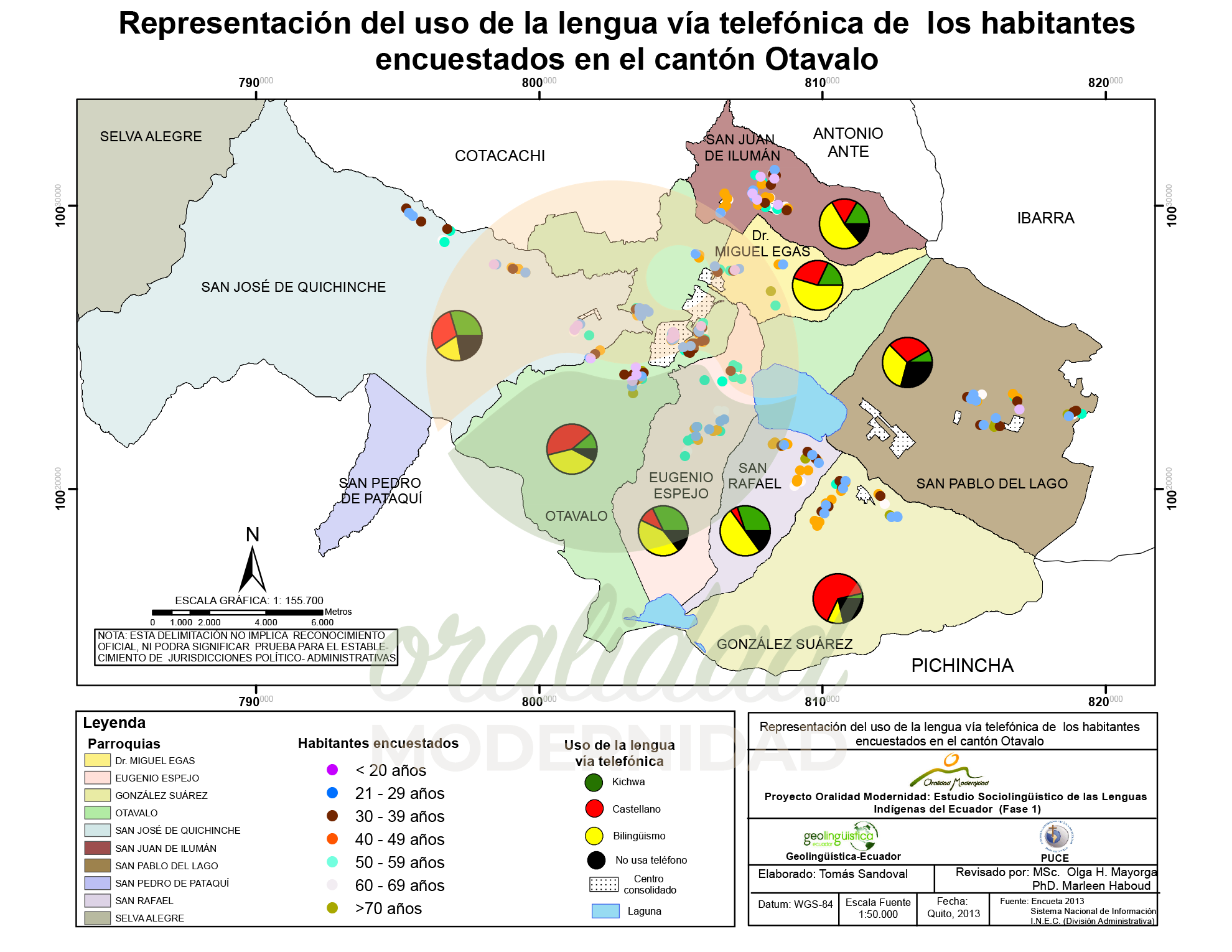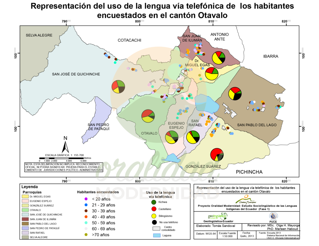 Cite: Haboud, M. (2013). Mapa de representación del uso de la lengua vía telefónica de los habitantes encuestados en el cantón Otavalo. Programa Oralidad Modernidad/GeolingüísticaEcuador. https://oralidadmodernidad.org/canton-otavalo/