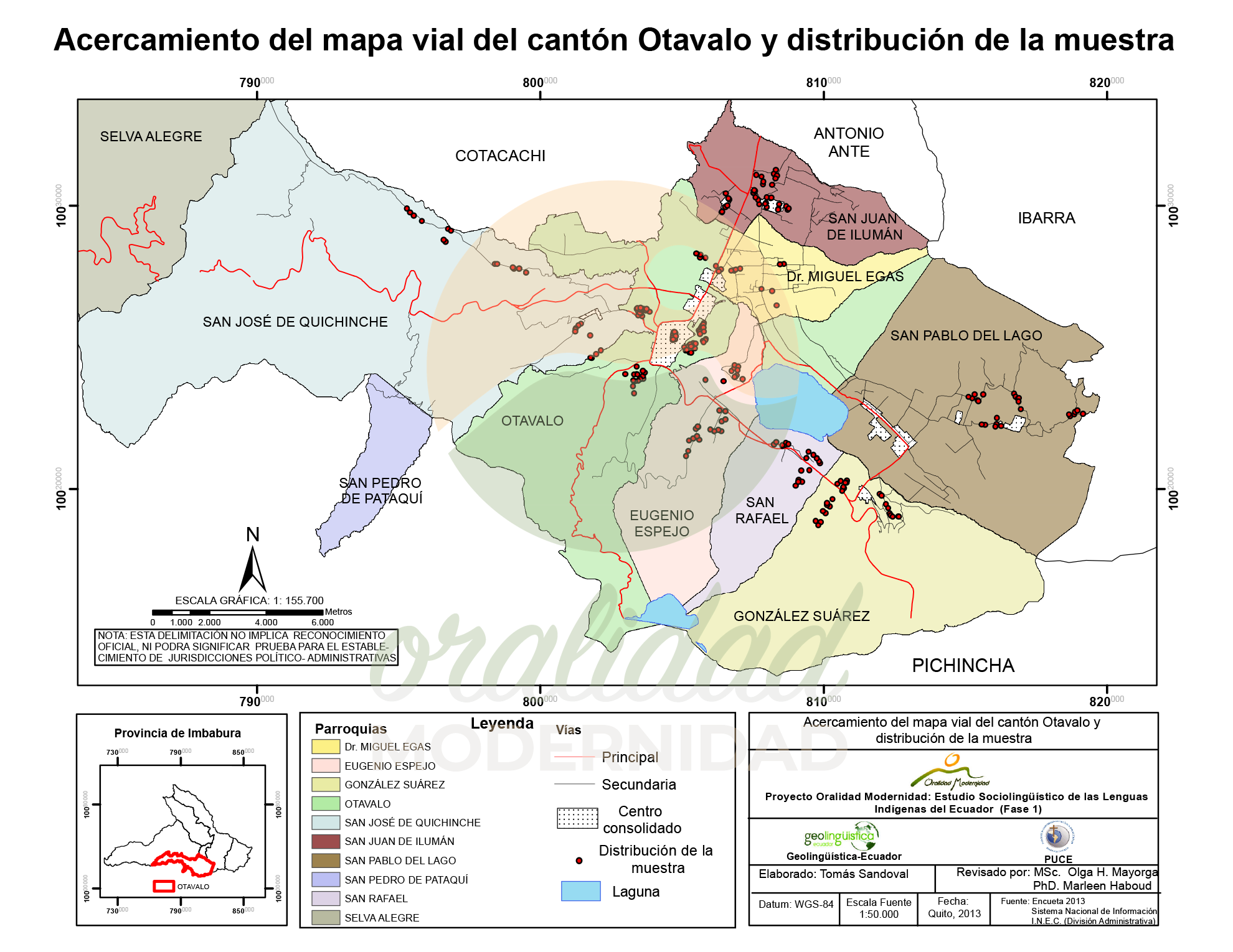 Cite: Haboud, M. (2013). Mapa vial del cantón Otavalo y distribución de la muestra. Programa Oralidad Modernidad/GeolingüísticaEcuador. https://oralidadmodernidad.org/canton-otavalo/