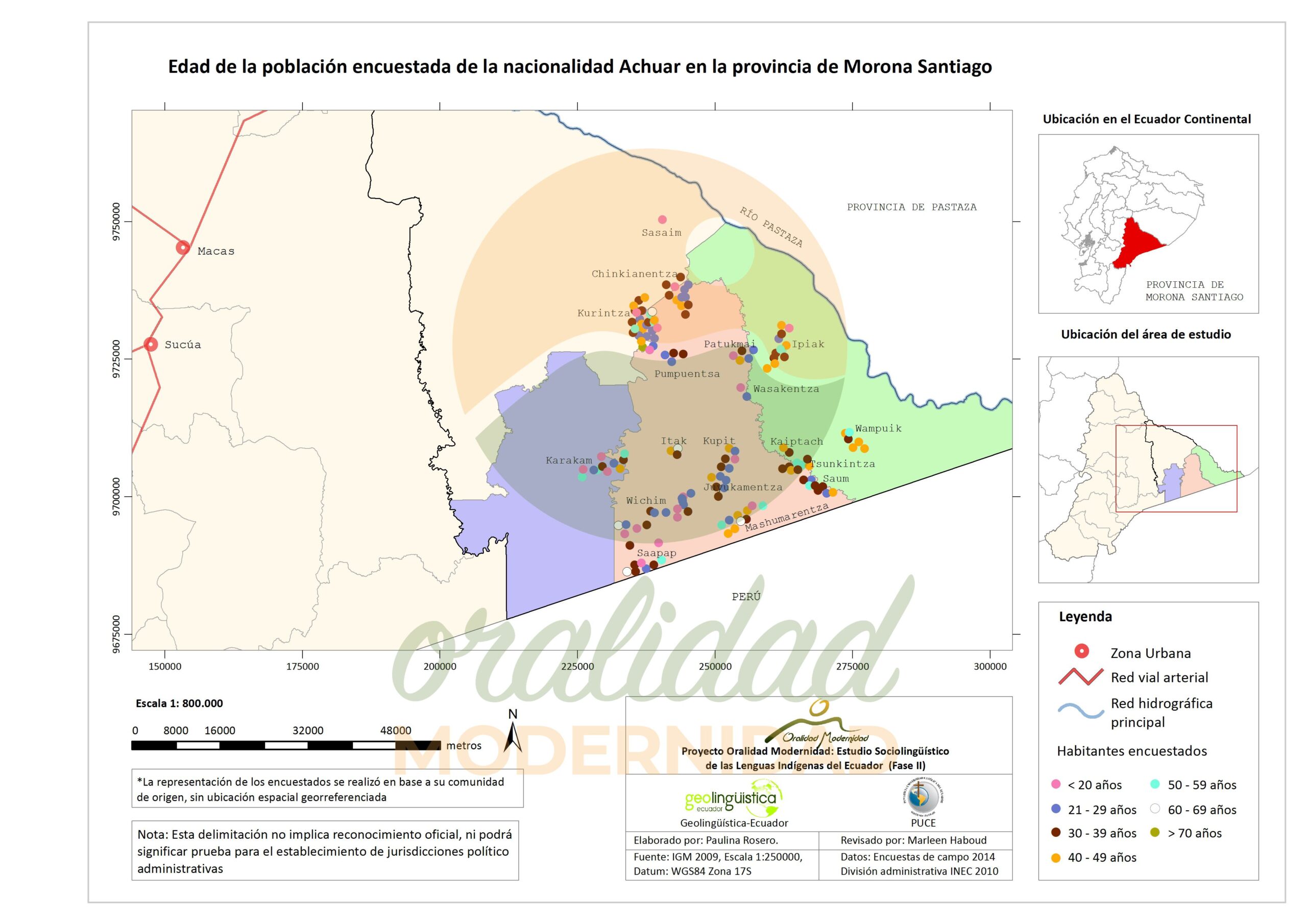 Cite: Haboud, M. (2014). Mapa de edad de la población encuestada de la nacionalidad Achuar en la provincia de Morona Santiago – Lengua Achuar. Programa Oralidad Modernidad/GeolingüísticaEcuador. https://oralidadmodernidad.org/cartografia-achuar/