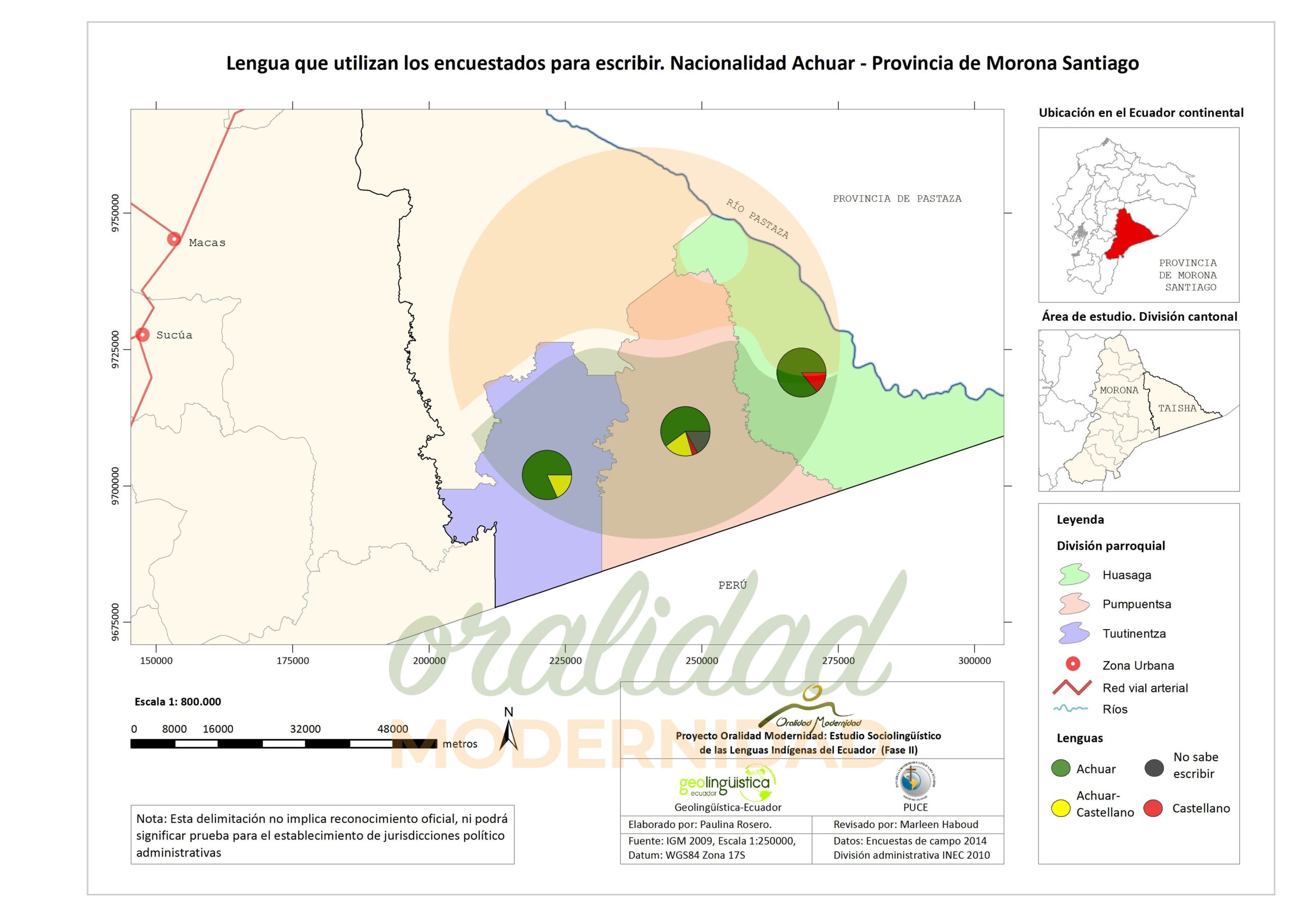 Cite: Haboud, M. (2014). Mapa de percepción de los encuestados para escribir de la nacionalidad Achuar en la provincia de Morona Santiago – Lengua Achuar. Programa Oralidad Modernidad/GeolingüísticaEcuador. https://oralidadmodernidad.org/cartografia-achuar/
