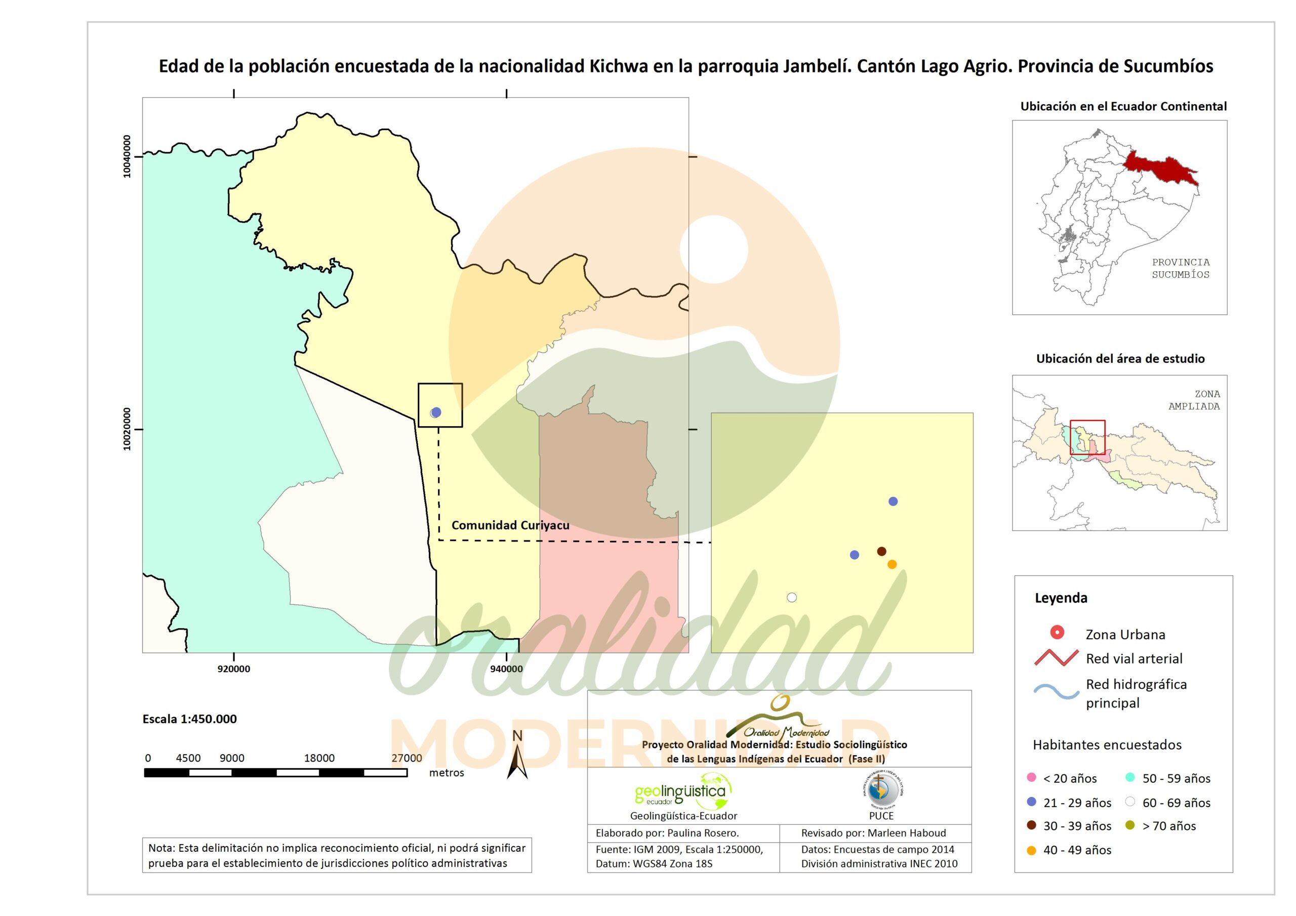 Cite: Haboud, M. (2014). Mapa de la edad de la población encuestada de la nacionalidad Kichwa en la parroquia Jambelí del cantón Lago Agrio en la provincia de Sucumbíos. Programa Oralidad Modernidad/GeolingüísticaEcuador. https://oralidadmodernidad.org/cartografia-sucumbios-kichwa/