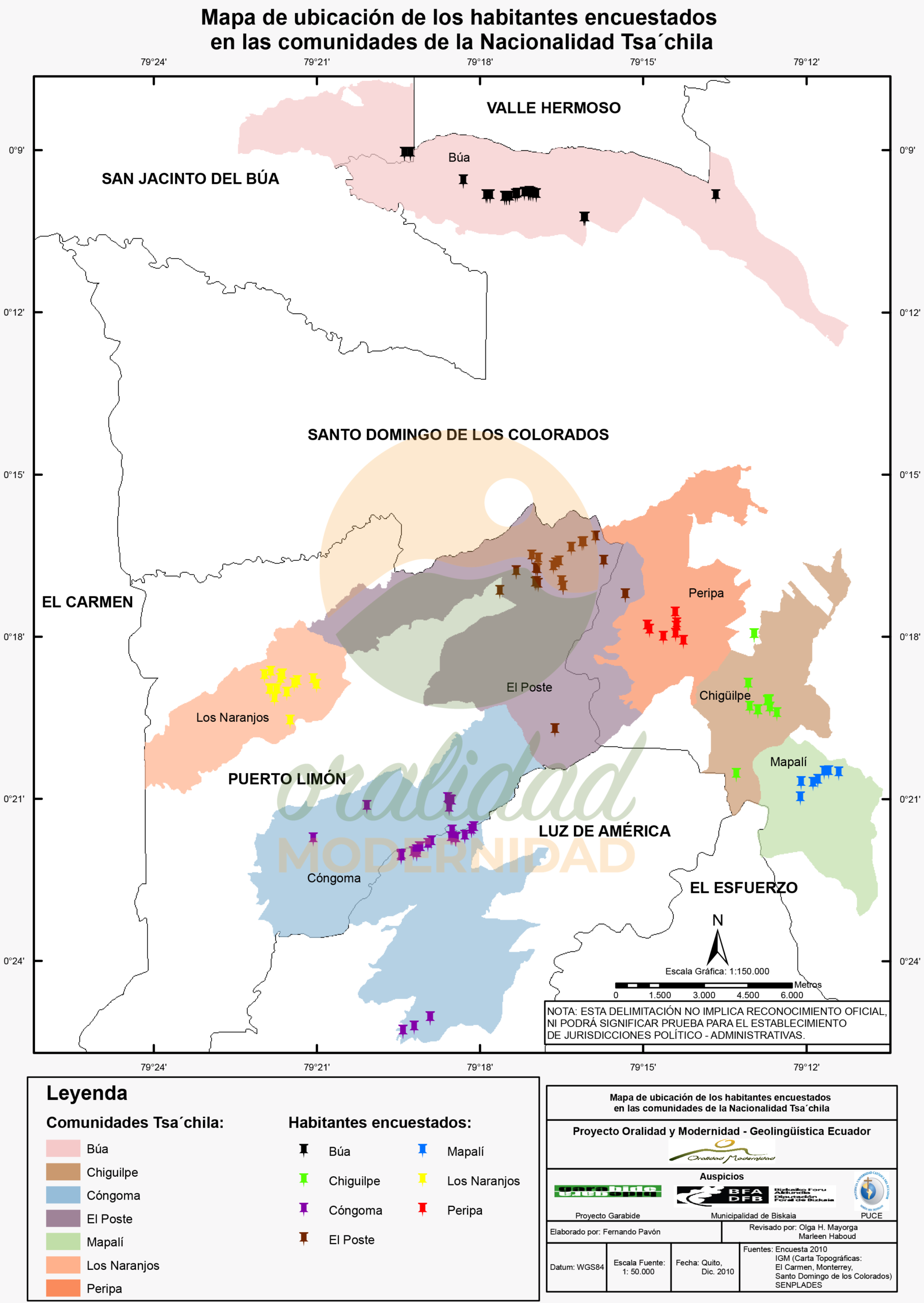 Cite: Haboud, M. (2010). Mapa de ubicación de los habitantes encuestados en las comunidades de la Nacionalidad Tsa’chila. Programa Oralidad Modernidad/GeolingüísticaEcuador. https://oralidadmodernidad.org/cartografia-tsachila/