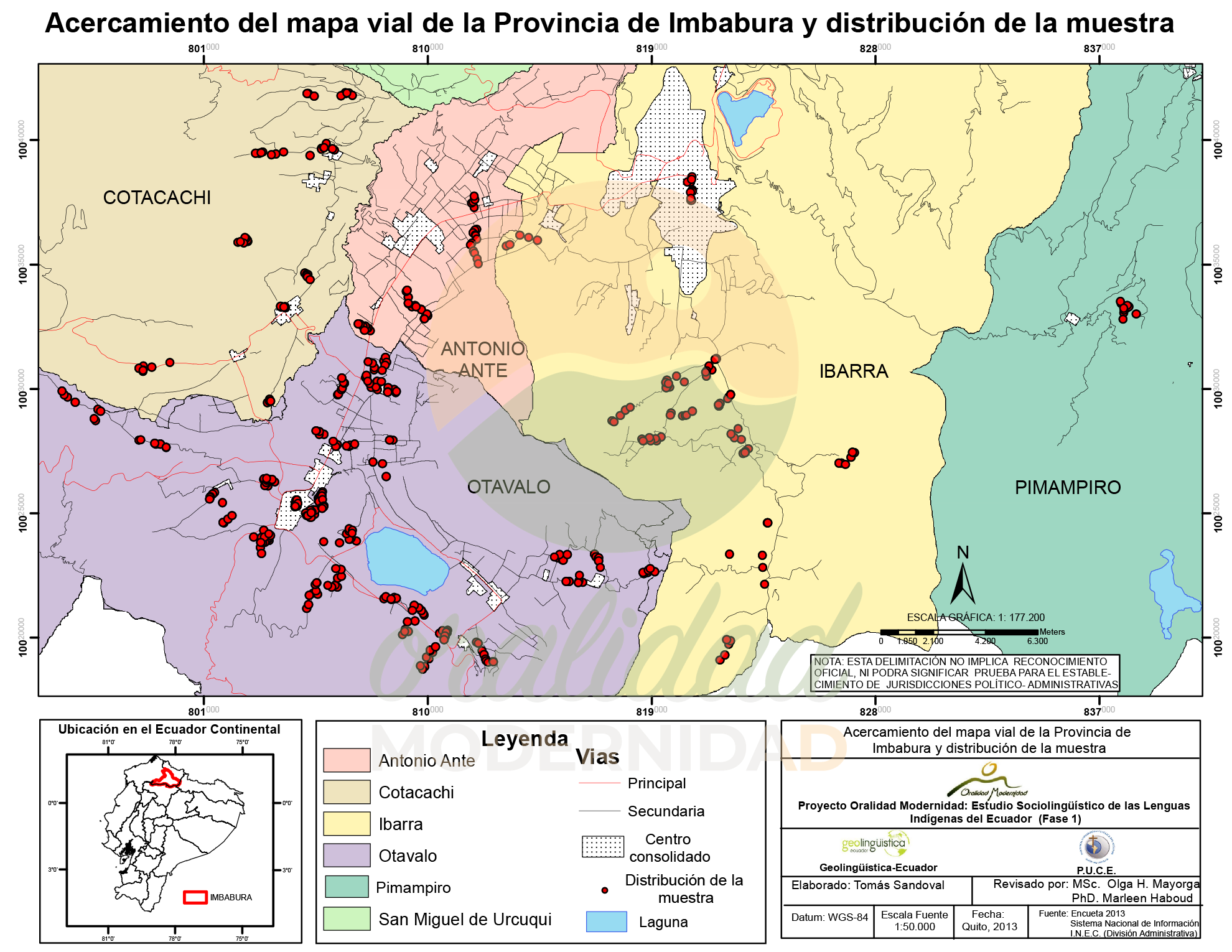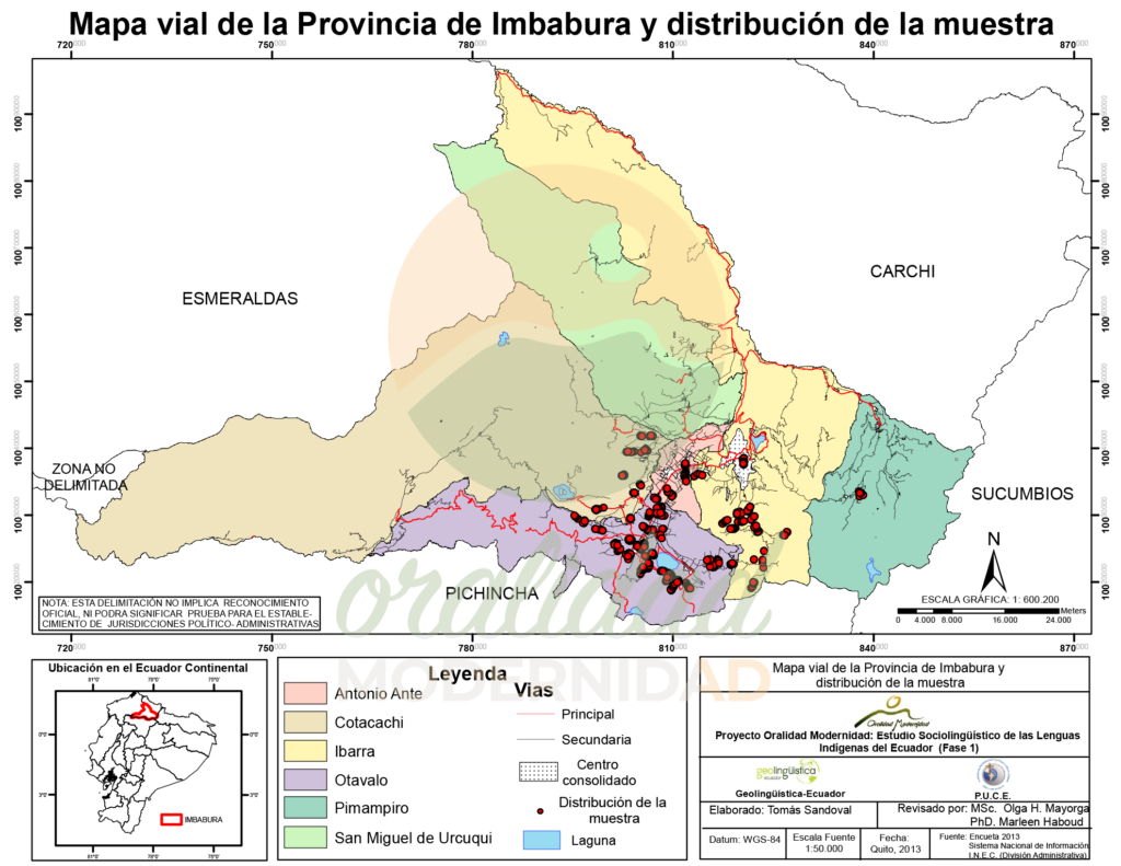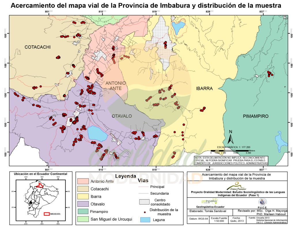 Cite: Haboud, M. (2013). Mapa vial de la provincia de Imbabura y distribución de la muestra. Programa Oralidad Modernidad/GeolingüísticaEcuador. https://oralidadmodernidad.org/provincia-imbabura/