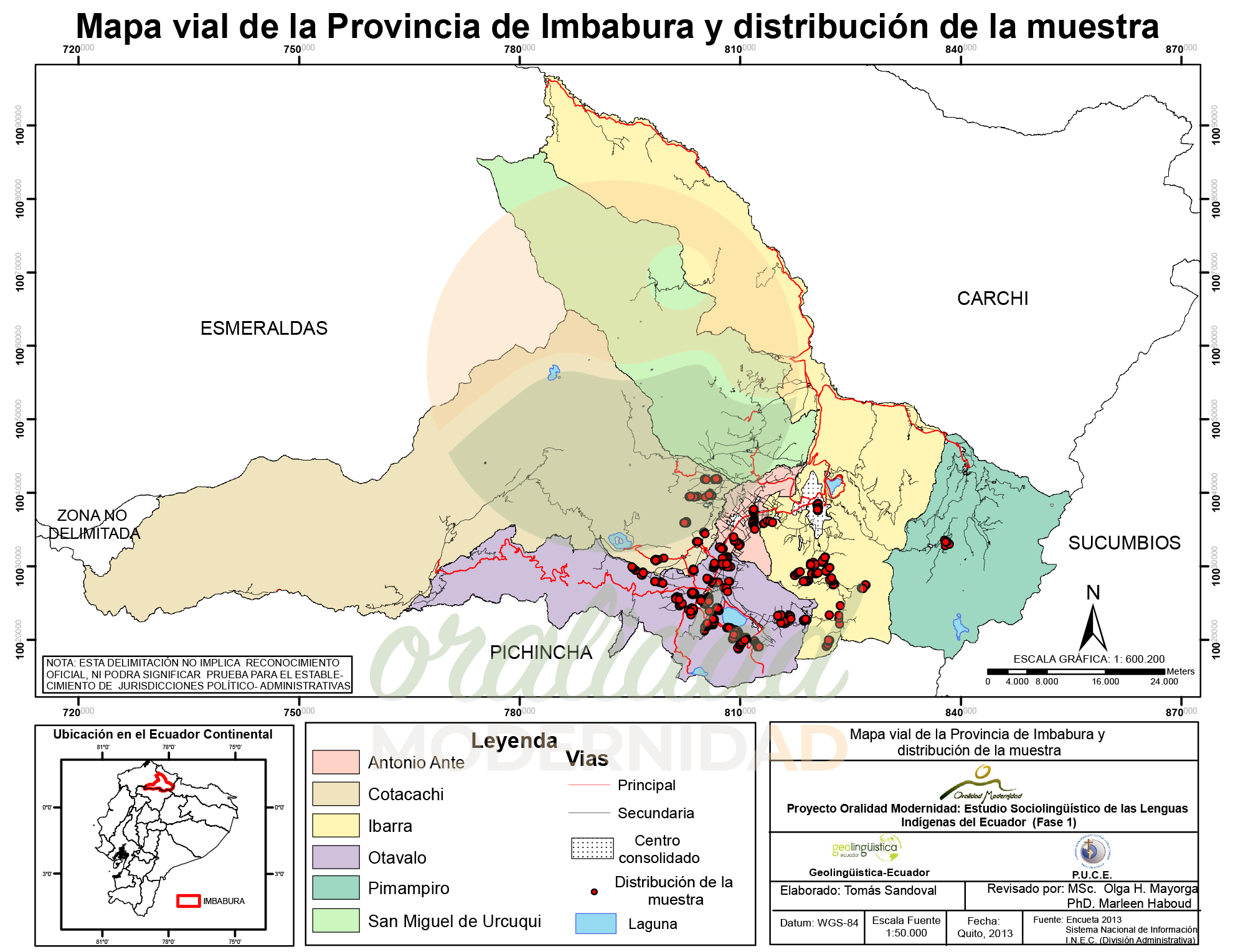 Cite: Haboud, M. (2013). Acercamiento del mapa vial de la provincia de Imbabura y distribución de la muestra. Programa Oralidad Modernidad/GeolingüísticaEcuador. https://oralidadmodernidad.org/provincia-imbabura/